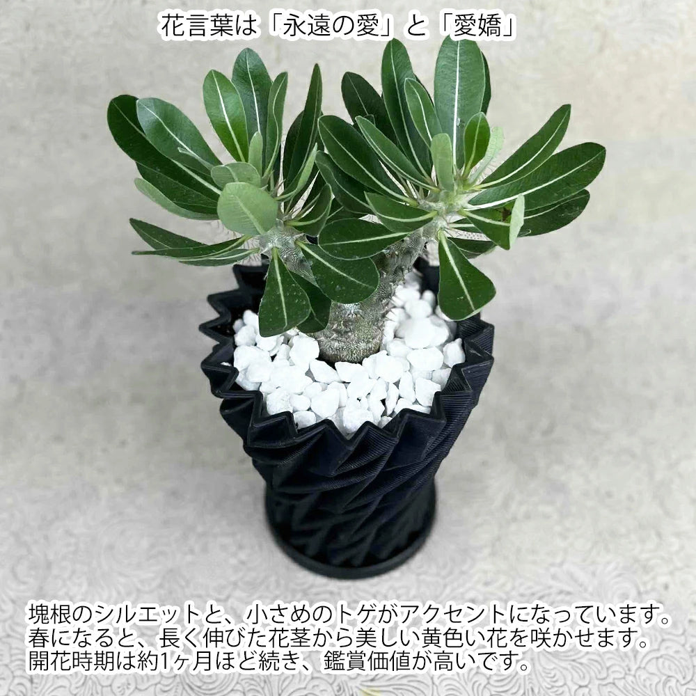 パキポディウム デンシフローラムはポテっとした塊茎に太く短い刺が可愛らしい人気のコーデックス。パキポディウムの中では丈夫で育てやすいのでコーデックス入門として人気です。